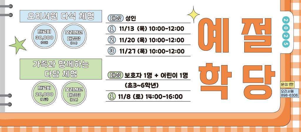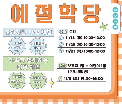오리서원 예절학당 가족과 함께하는 다담체험 참가자 확대 모집(초3~6)