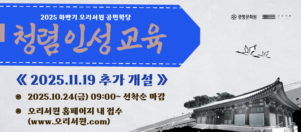 오리서원은 전통 인성교육 및 학습 기관이었던 서원의 역할을 현대적으로 재해석한 청렴·인성·전통문화 프로그램을 운영하는 열린 문화공간입니다.