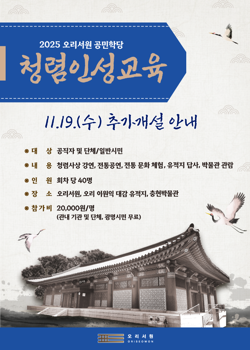 2025 하반기 공민학당_청렴인성교육을 1회차 추가 개설 운영 예정이오니 많은 참여 바랍니다.